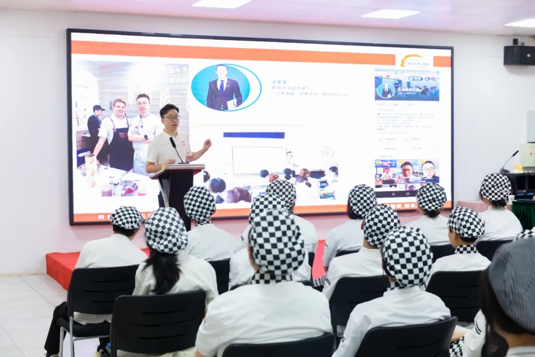 从西安新东方走出的成功学子,现任西安兰湘子餐饮管理有限公司厨政部培训经理及中级合伙人王奎,以亲身经历讲述了《成长与蜕变》的故事。他的分享,如同一盏明灯,照亮了新生们前行的道路,让每一位听众都感受到了努力与坚持的力量。