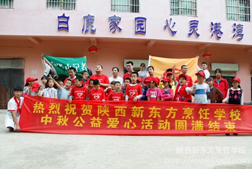 “古人云‘老吾老,以及人之老;幼吾幼,以及人之幼。’就是教导我们要关爱老人,这既是中华民族的传统美德,也是我们每一个人要传承的责任。西安新东方厨师学校希望通过此次“公益再出发”活动,唤起人们对智障儿童的真切关怀与热爱。在这样一个分享团圆,弘扬“尊老爱幼”中华传统美德的中秋佳节,与家人共赏一轮月、共享天伦,让孝老爱亲、敬老助老、感恩奉献成为一种责任、一种使命、一种习惯,而我们的社会也一定会因此变得更加和谐、更加美好、更加灿烂!